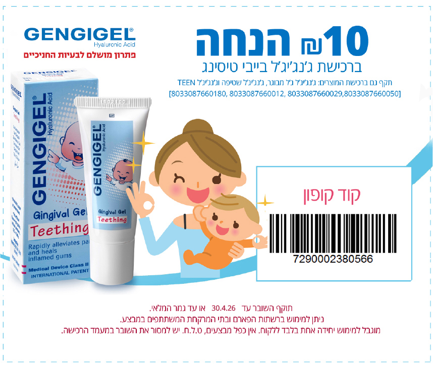 ג'נג'יג'ל בייבי פותח במיוחד לצרכי הגיל הרך ומיועד לתינוקות וילדים בשלב בקיעת השיניים. הג'ל הטבעי בטעם חלב ווניל הוא בעל יכולת הידבקות מקסימאלית ועל כן אינו נשטף עם הרוק ויעיל לפרקי זמן ארוכים. ג'נג'יג'ל בייבי אינו מכיל חומרים מרדימים ומאלחשים, מרגיע את הכאב היות והוא פועל להפחתת בצקות ונפיחויות בחניכיים ומטפל באפטות ופצעים שונים בחלל הפה.